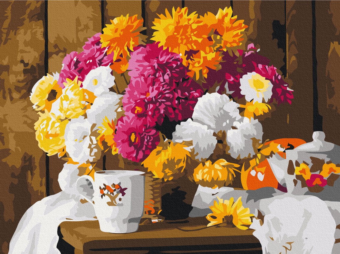 Vi har fundet Mal Efter Tal Autumn Tea Party fra Brushme hos smartwall i kategorien . Vores Premium mal efter tal sæt leveres komplet med højkvalitets lærred med påførte konturer og tal, du skal male efter. Baggrunden på lærredet er tonet, så du ikke skal bruge så meget maling for at dække lærredet. Sættet indeholder akrylmaling, nummerere